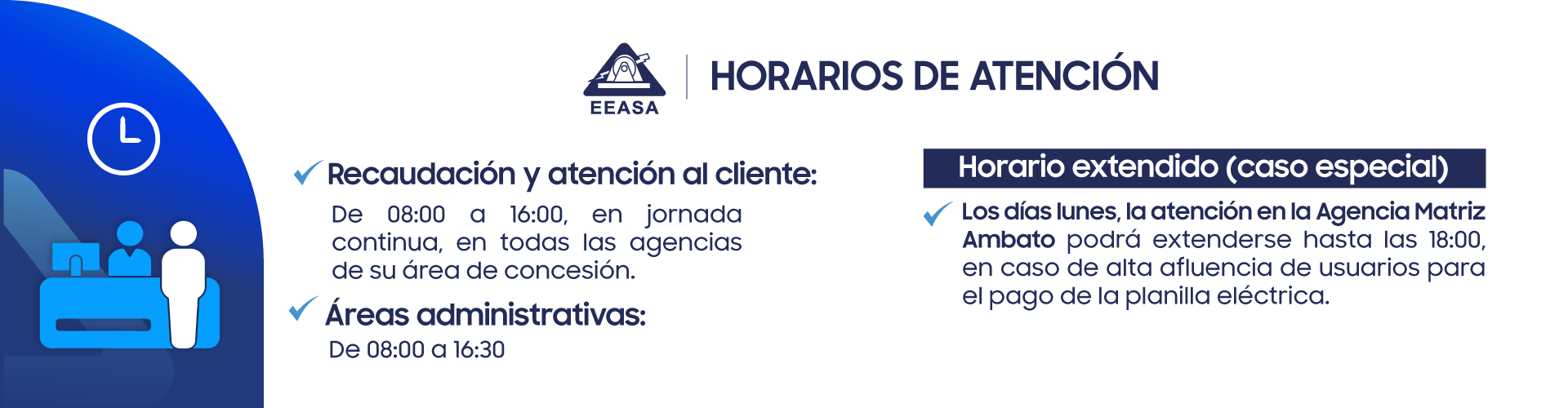 EEASA INFORMA SUS HORARIOS DE ATENCIÓN Y HORARIO EXTENDIDO LOS DÍAS LUNES EN LA AGENCIA MATRIZ